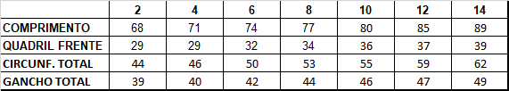 Tabela de medidas