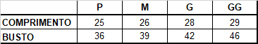 Tabela de medidas